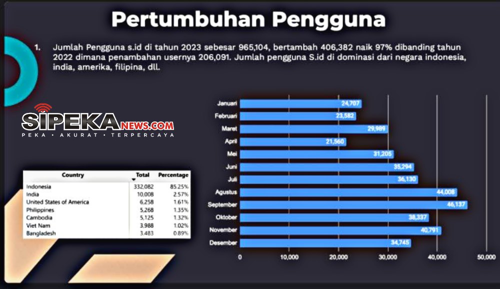 miliar akses, naik 68,45% dibandingkan dengan tahun 2022. Jumlah pengguna S.id juga meningkat 97% menjadi 965 ribu, didominasi oleh pengguna dari Indonesia, India, Amerika, dan Filipina.